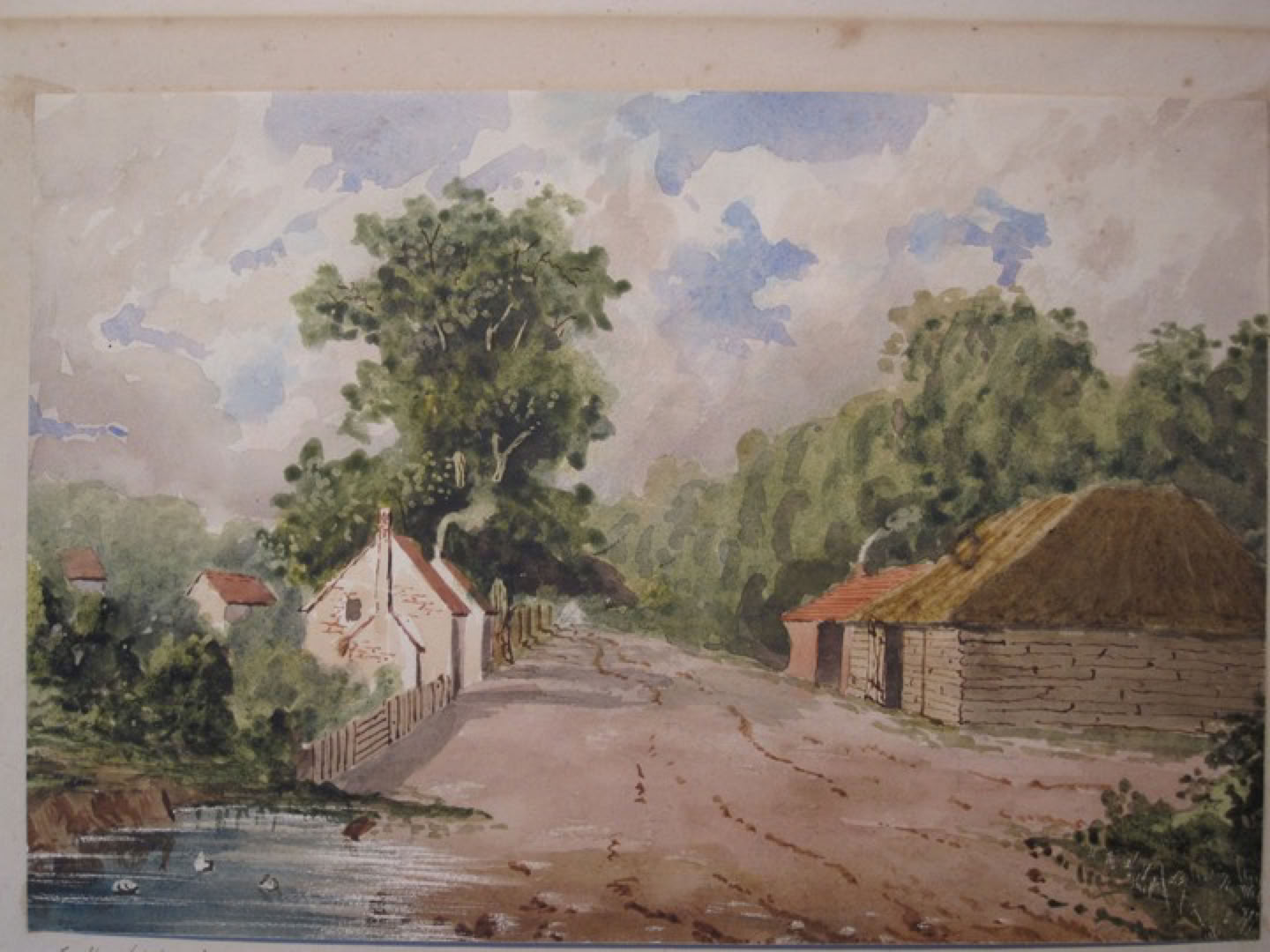 • One contributor wanted to know about ‘appach' who lived at Shinfield Lodge, I can't give any info but I had a picture painted by him of 'shinfield' as i am interested in local history. It took a time to identify the location but the pond on the left is at the top of brookers hill, The Merry Maidens is beyond the (now demolished) cottages to left and the building on the right is the forge, now the site of a nice house.