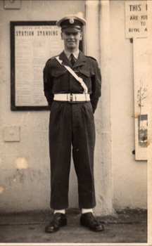 Start one week at Cardington kit supply, eight weeks West Kirby Square Bashing (Initial Training), Ten weeks Pershore RAF Police Training (harder than Square Bashing).
