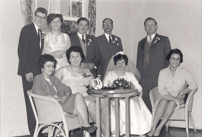 1964 - Yvonne with John Imrie (standing centre) & Marge Imrie (seated 2nd left).