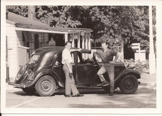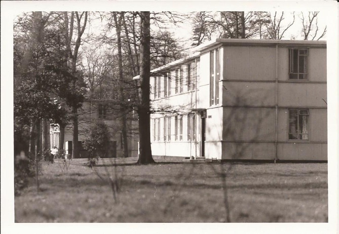 1964 - Fronting main road. L-R Jim Leonard, Bull(query), Taff Donovan, Mick Templeton, Charlie (chef)
