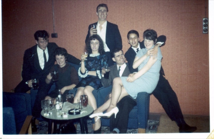 NAAFI Blue Room. George Chapman (Comcen), Pauline Eastood (Admin), Rene Wilson + Taff Legett+Bob Murney+Rusty Blagden all Commcen, Yvonne Freeman (Supply)