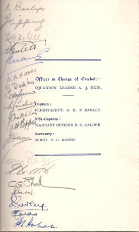 1942 Cricket Reunion Dinner brochure